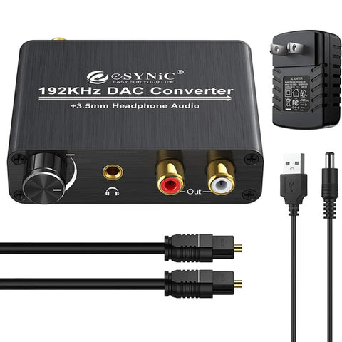 This DAC converter is a great option for most users; the easy setup and versatile features make it a great choice. This converter converts digital coaxial/toslink/optical pcm audio signals to analog l/r audio and 3.5mm audio signals output. It has a professional audio amplifier chip and volume adjusting knob, allowing you to drive your headphone directly and adjust the output volume. A similar amp function allows you adjust the headphone jack and rca interface volume simultaneously.
